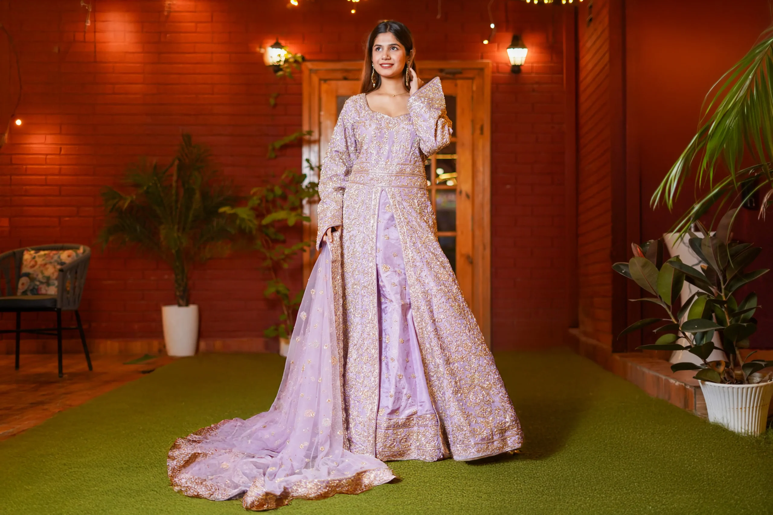 A refined Indo Western ensemble that blends traditional elegance with contemporary style, offering a graceful and fashionable look for special occasions.